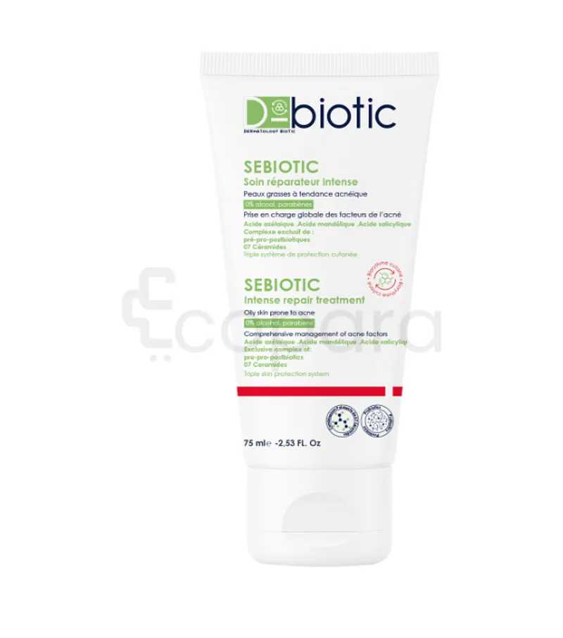 Formule synergique alliant le potentiel des acides et des actifs aux propriétés kératolytiques, antibactériennes, purifiantes pour d’assurer une prise en charge globale des facteurs de l’acné vulgaire et modérée. Le soin réparateur Sebiotic renforce la régénération de la peau pour une prise en charge globale des facteurs de l’acné.