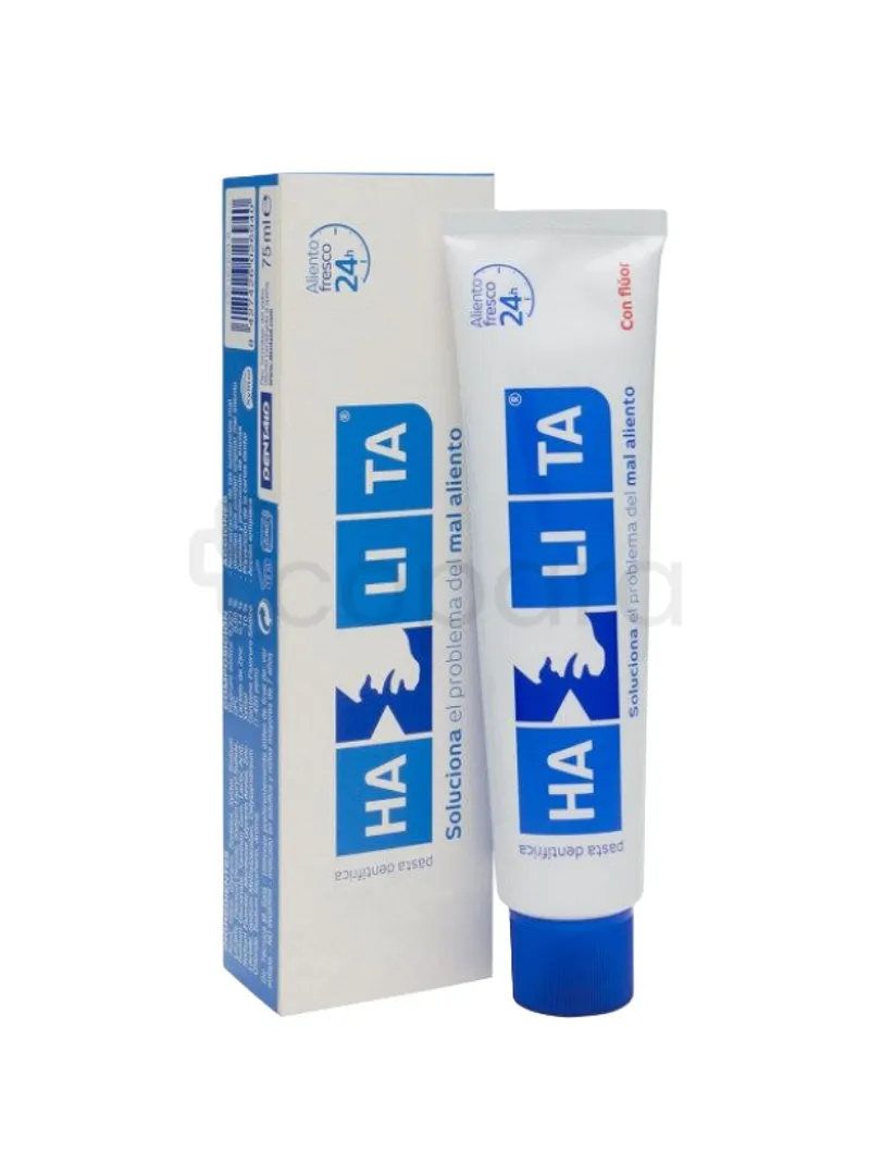 Halita Dentifrice élimine les bactéries et les gaz soufrés. Le dentifrice neutralise aussi la bouche odeurs qui se produisent en raison de la consommation de certains aliments (épices, ail, etc.) et l’utilisation de l’alcool et du tabac.