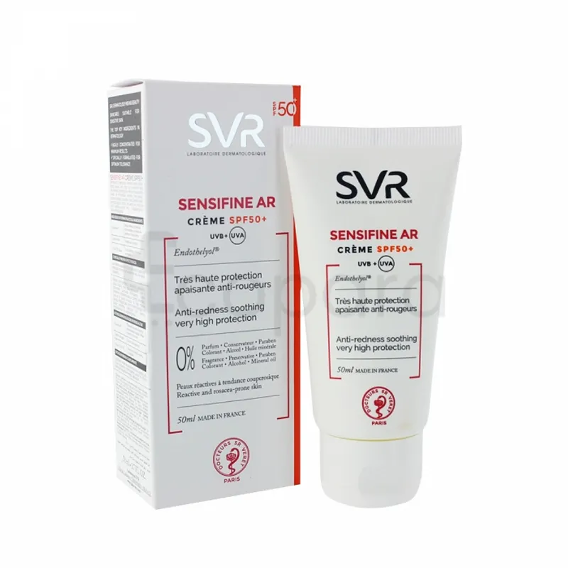 Sensifine AR Crème SPF50+ associe une très haute protection à des actifs apaisants et anti-rougeurs. Même exposées, les rougeurs sont atténuées, les sensations d’échauffement réduites. Hypoallergénique. Efficacité prouvée sous contrôle dermatologique.